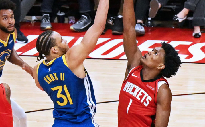 火箭队的首发阵容不会变化,申京、阿门汤普森搭档内线,狄龙布鲁克斯担任主力防守巴特勒,范弗利特、杰伦格林组成后场,杰伦格林的季后赛处子秀场均只有14分,命中率只有37.2%,前6场比赛他只打了一场好球,三分手感冰凉,突破到内线终结差,传球也比较随意。若勇士队抢七战包夹范弗利特,杰伦格林、史密斯等球员的三分必须要投来投开了。
